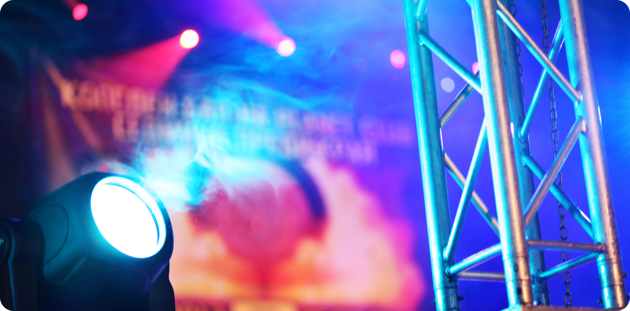 Next, you can use light and video projection to display content on the backdrop. This could include gobos, moving or rotating shapes, or projected video or presentation content.